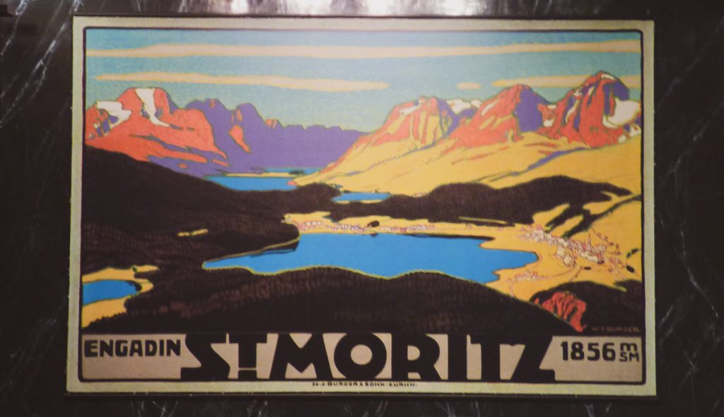 Saint Moritz è piccolina e la si può visitare in un giorno. Noi siamo arrivati con il Treno del Bernina quindi il nostro tour inizia dalla stazione, che si trova ad altezza lago. Attraverso comode scale mobili coperte arrivi alla parte alta del paese, Saint Moritz Dorf, quella chic. Mentre sali, sulle pareti puoi ammirare cartoline d’epoca e copie di vecchie pubblicità turistiche. Saint Moritz infatti è una località frequentata per le sue terme fin dal 1800, e nel 1864 ha proprio inventato il turismo alpino invernale, perciò queste immagini così retrò sono un pezzetto di storia.